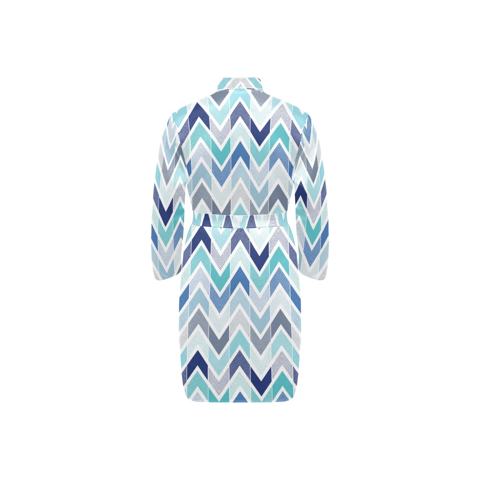 zigzag chevron blue pattern Men's Long Sleeve Belted Night Robe