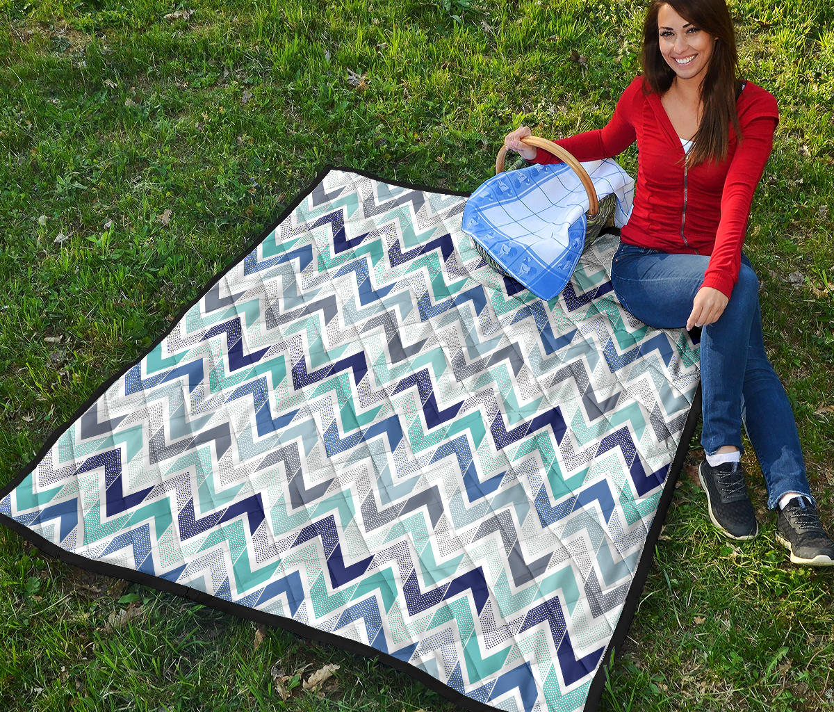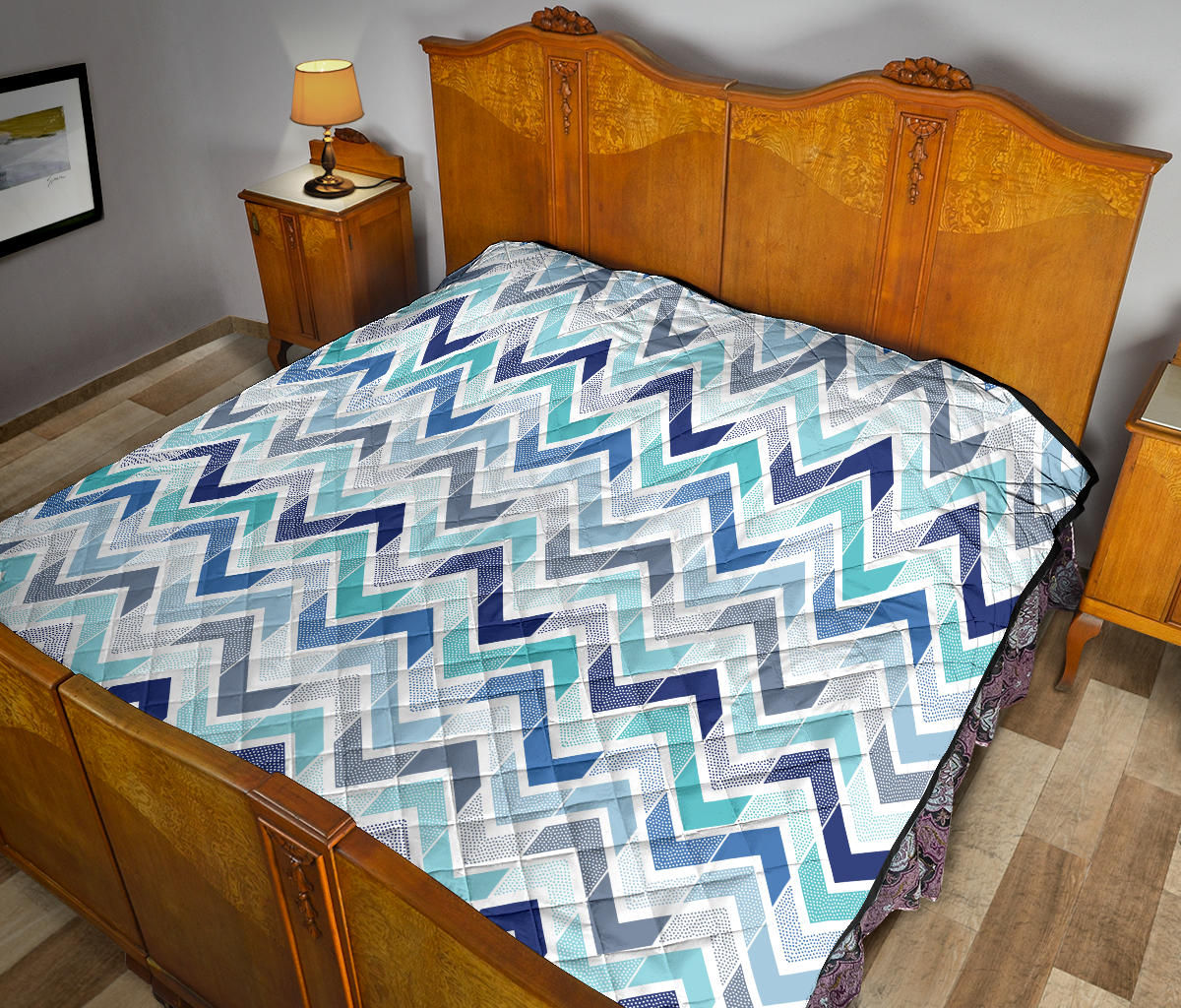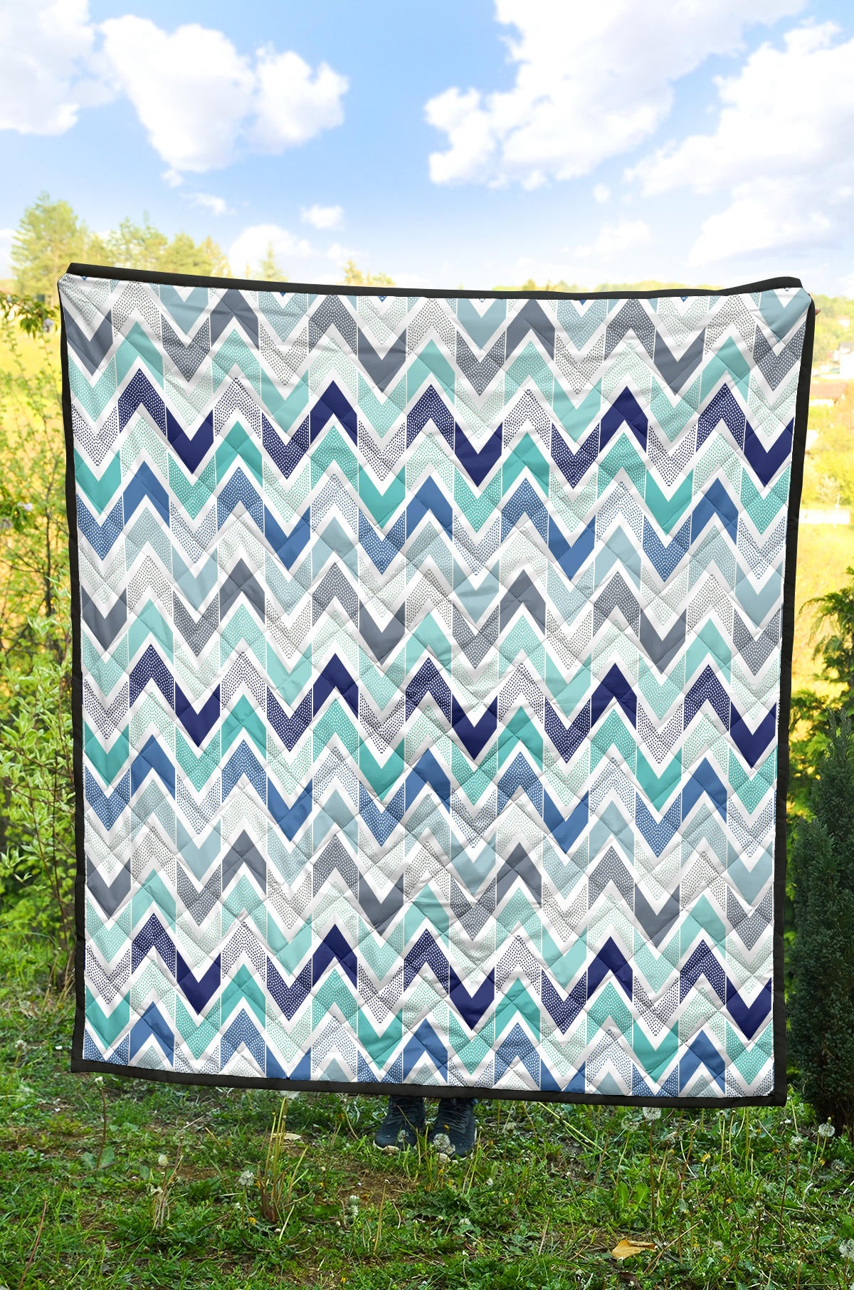 Zigzag Chevron Blue Pattern Premium Quilt is a uniqued design and limited item. It made to order, hand printed, and sewn with love in our factory.