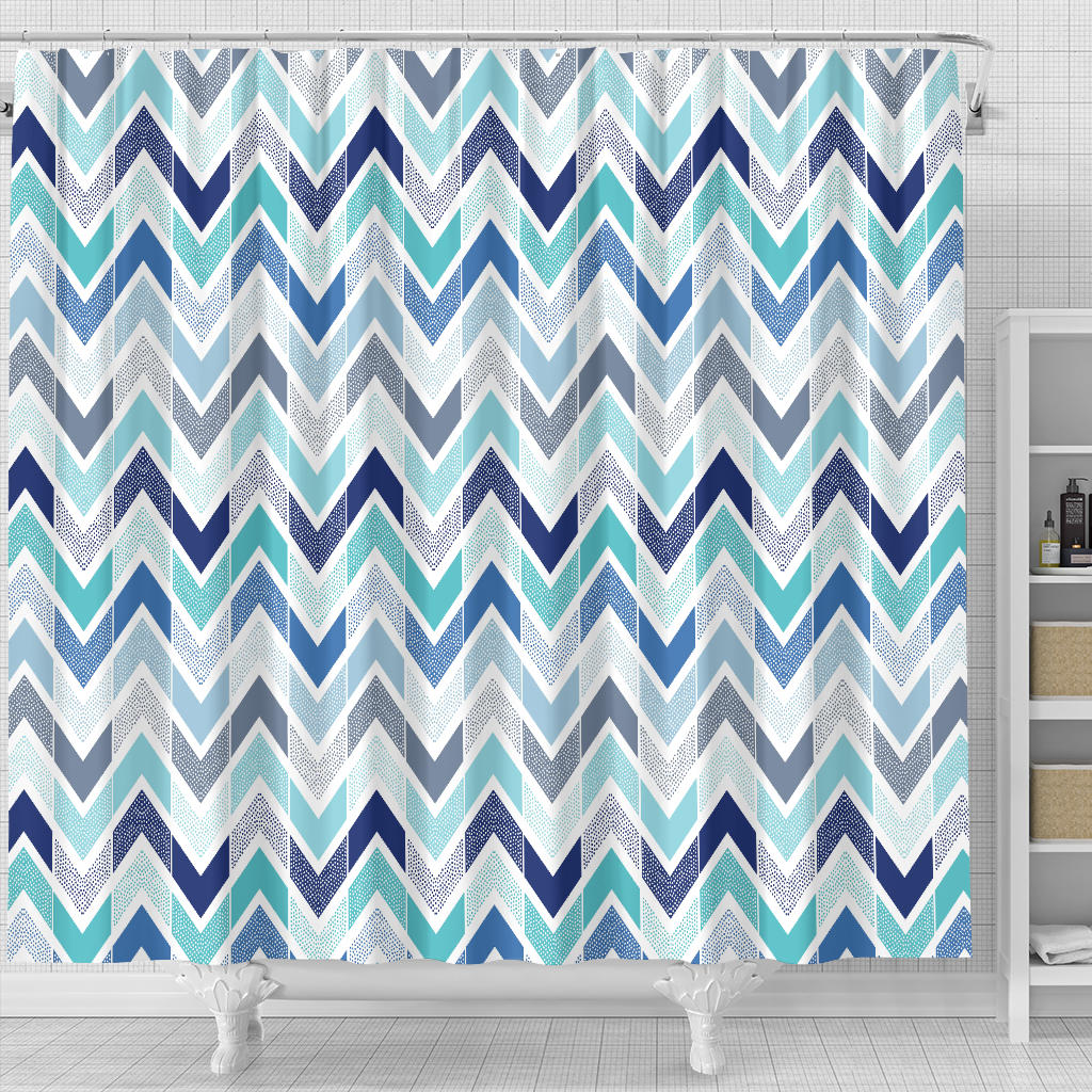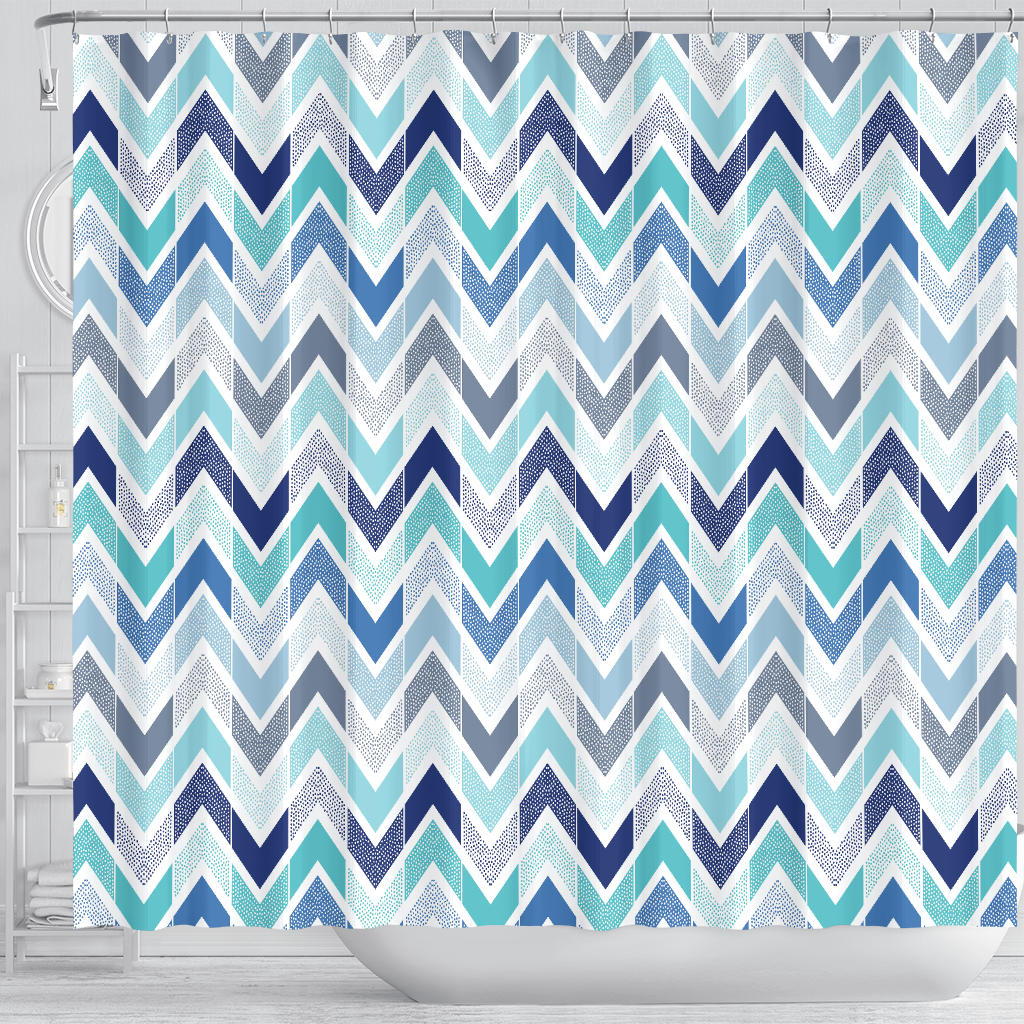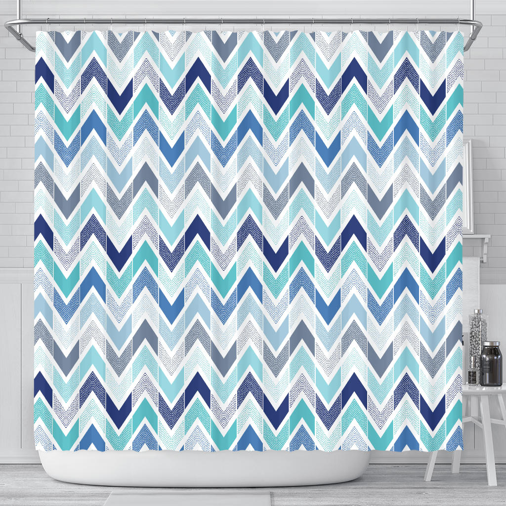 Zigzag Chevron Blue Pattern Shower Curtain Fulfilled In US