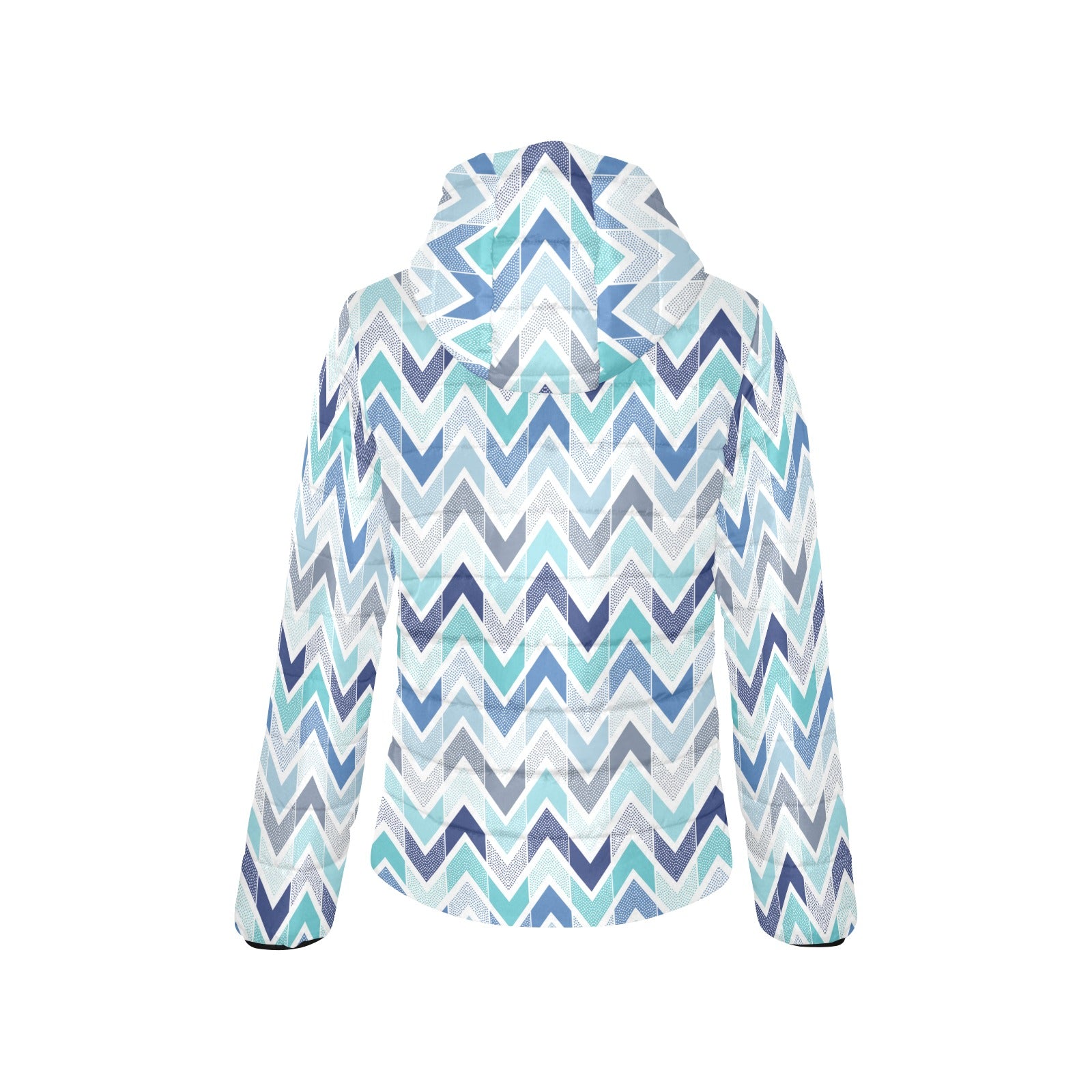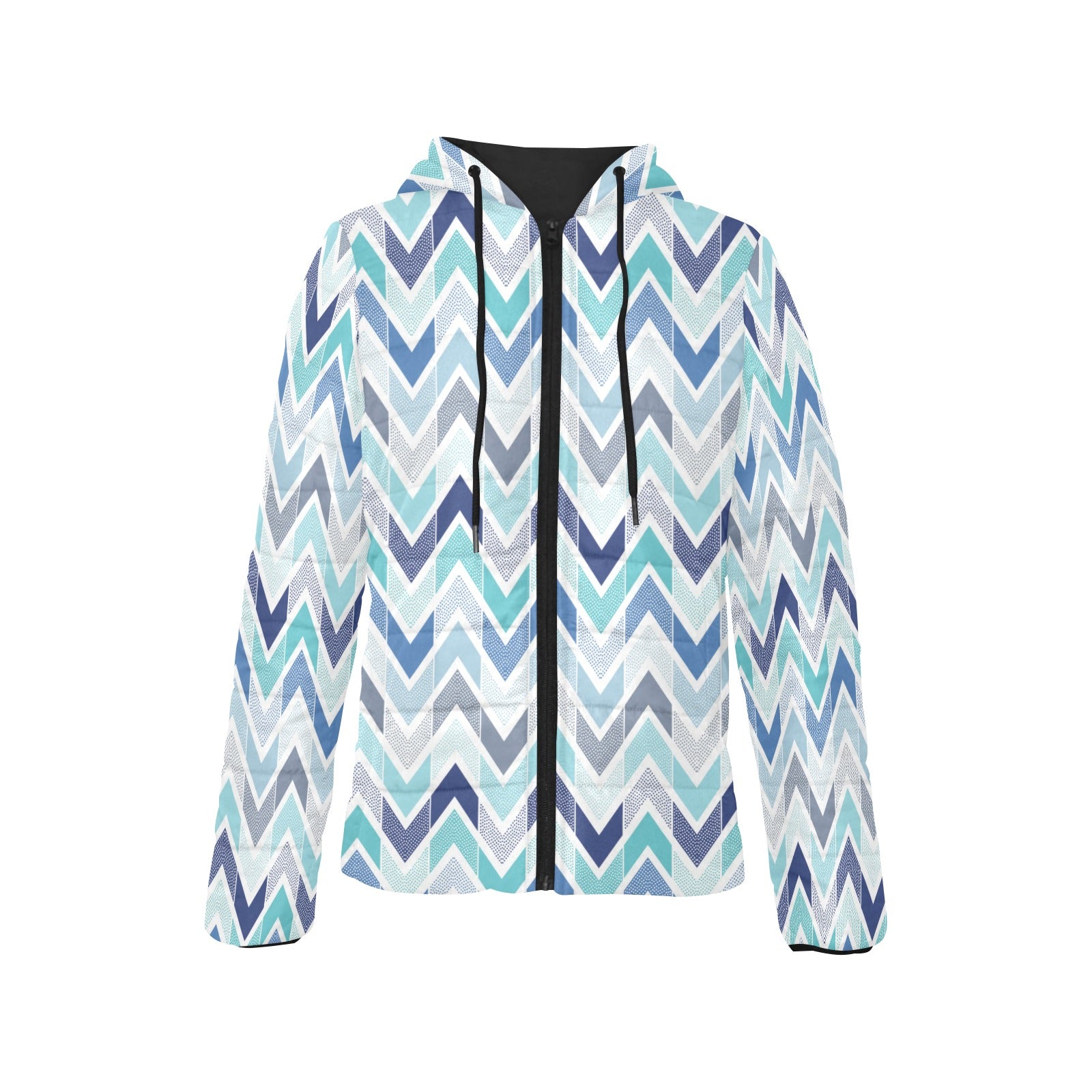 zigzag chevron blue pattern Women's Padded Hooded Jacket