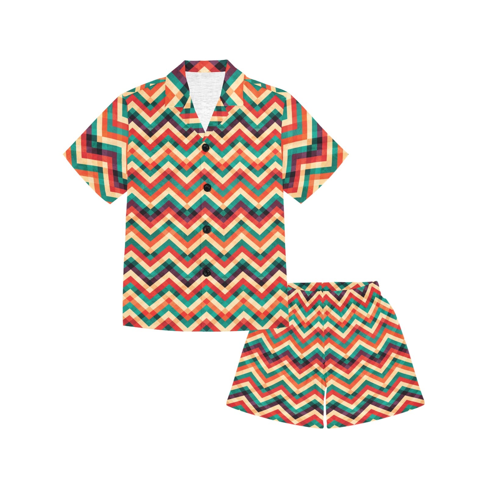 zigzag chevron colorful pattern Kids' Boys' Girls' V-Neck Short Pajama Set