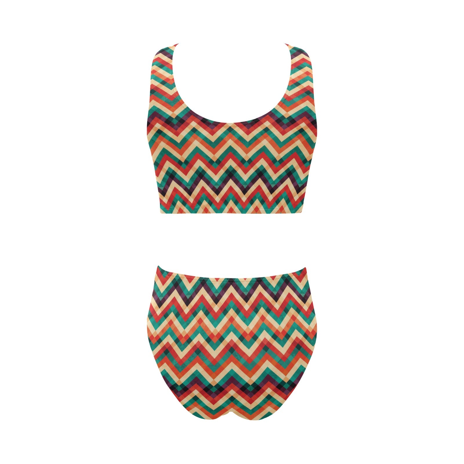 zigzag chevron colorful pattern Chest Bowknot High Waisted Bikini Swimsuit