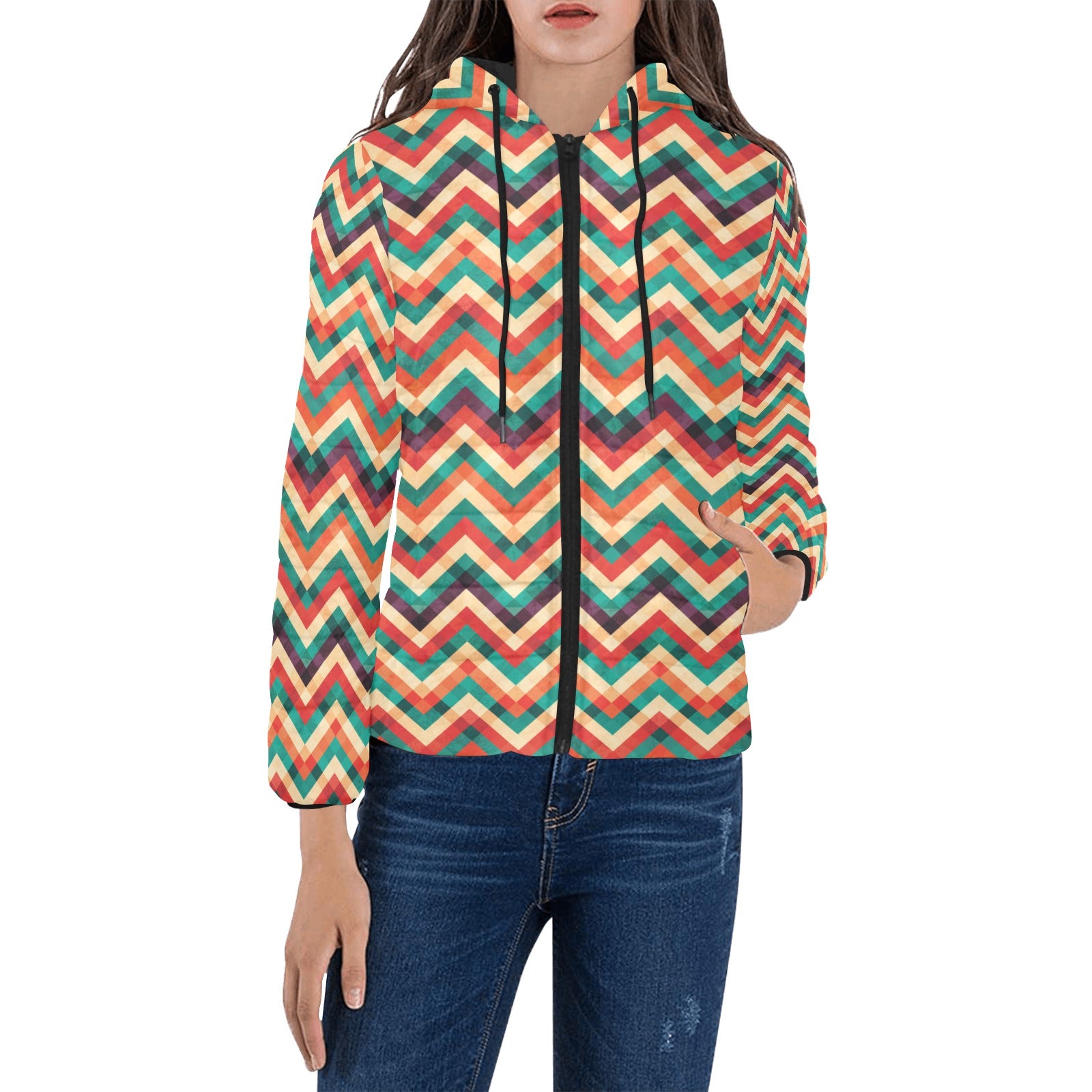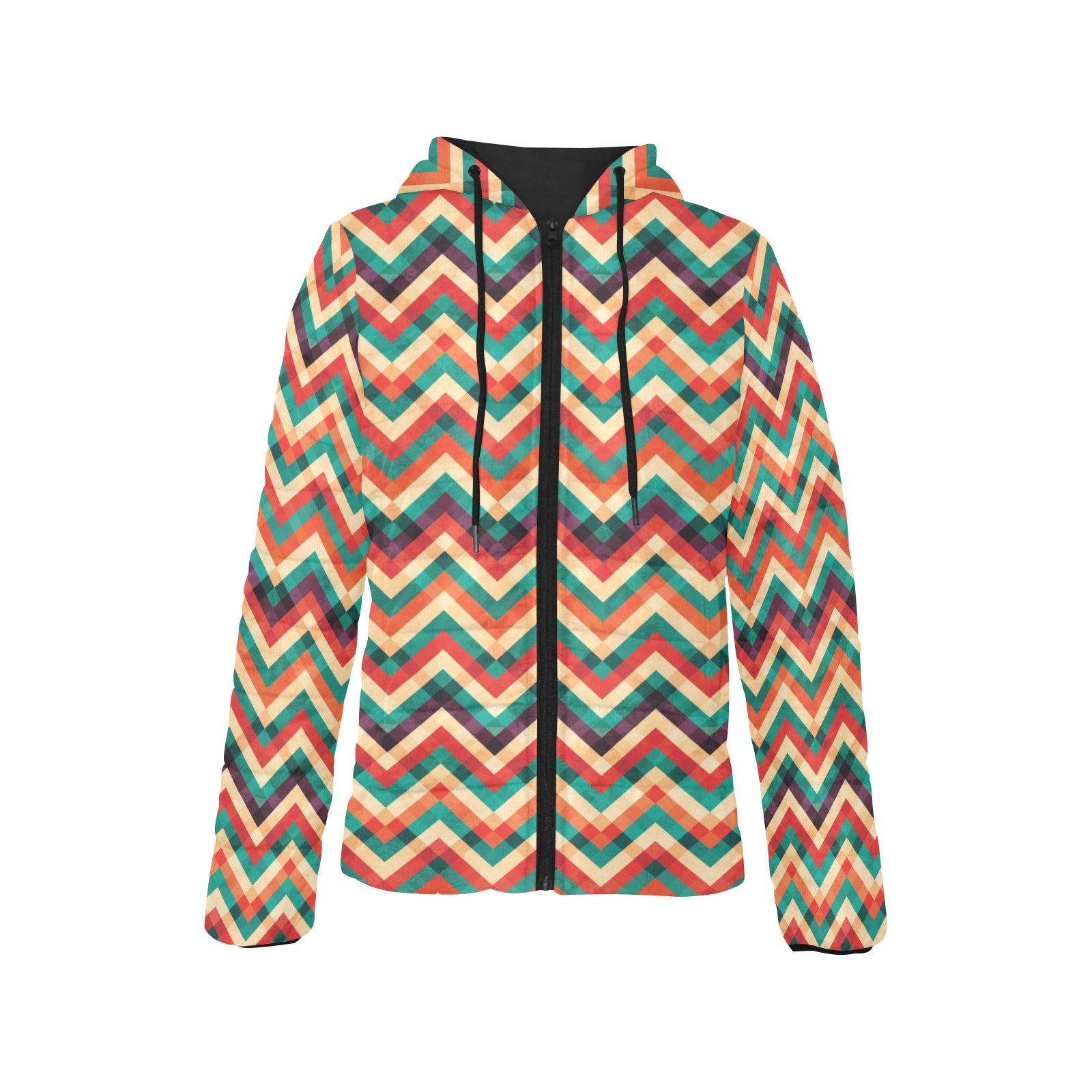 zigzag chevron colorful pattern Women's Padded Hooded Jacket
