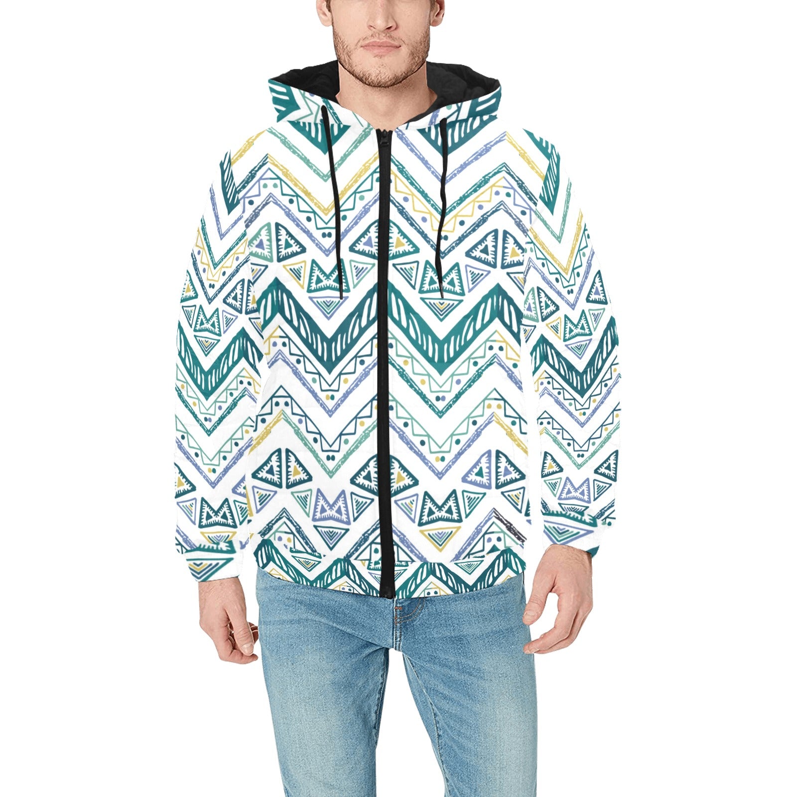 zigzag chevron paint design pattern Men's Padded Hooded Jacket