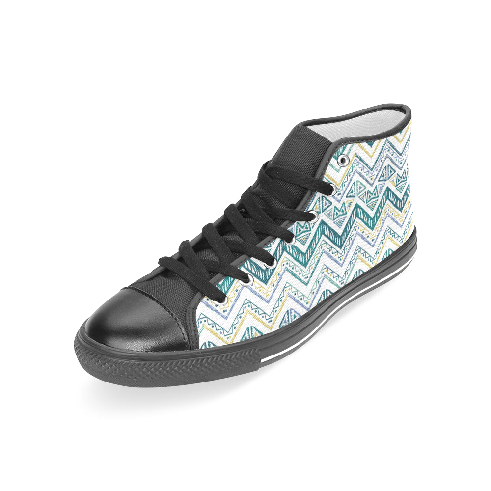 zigzag chevron paint design pattern Women's High Top Canvas Shoes Black