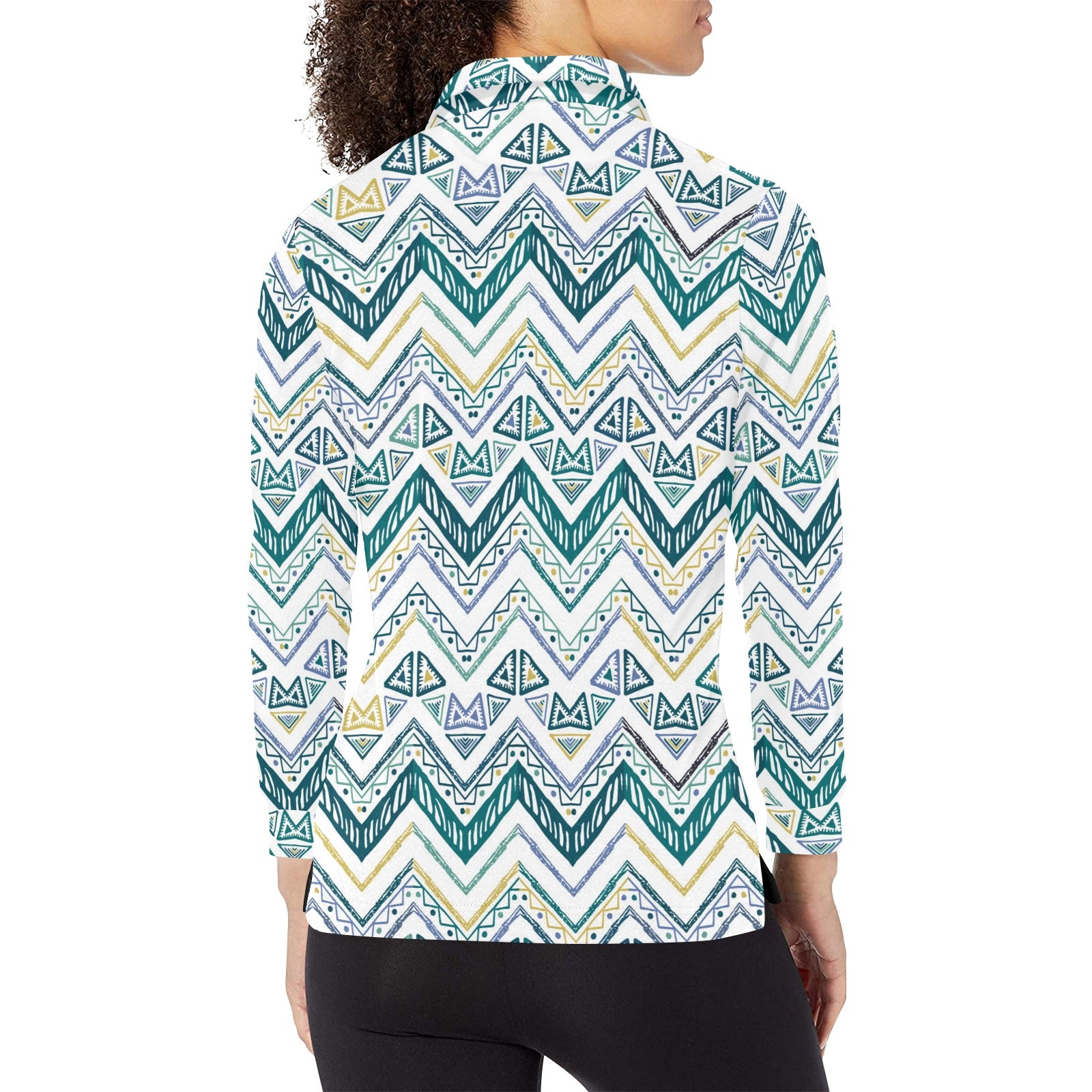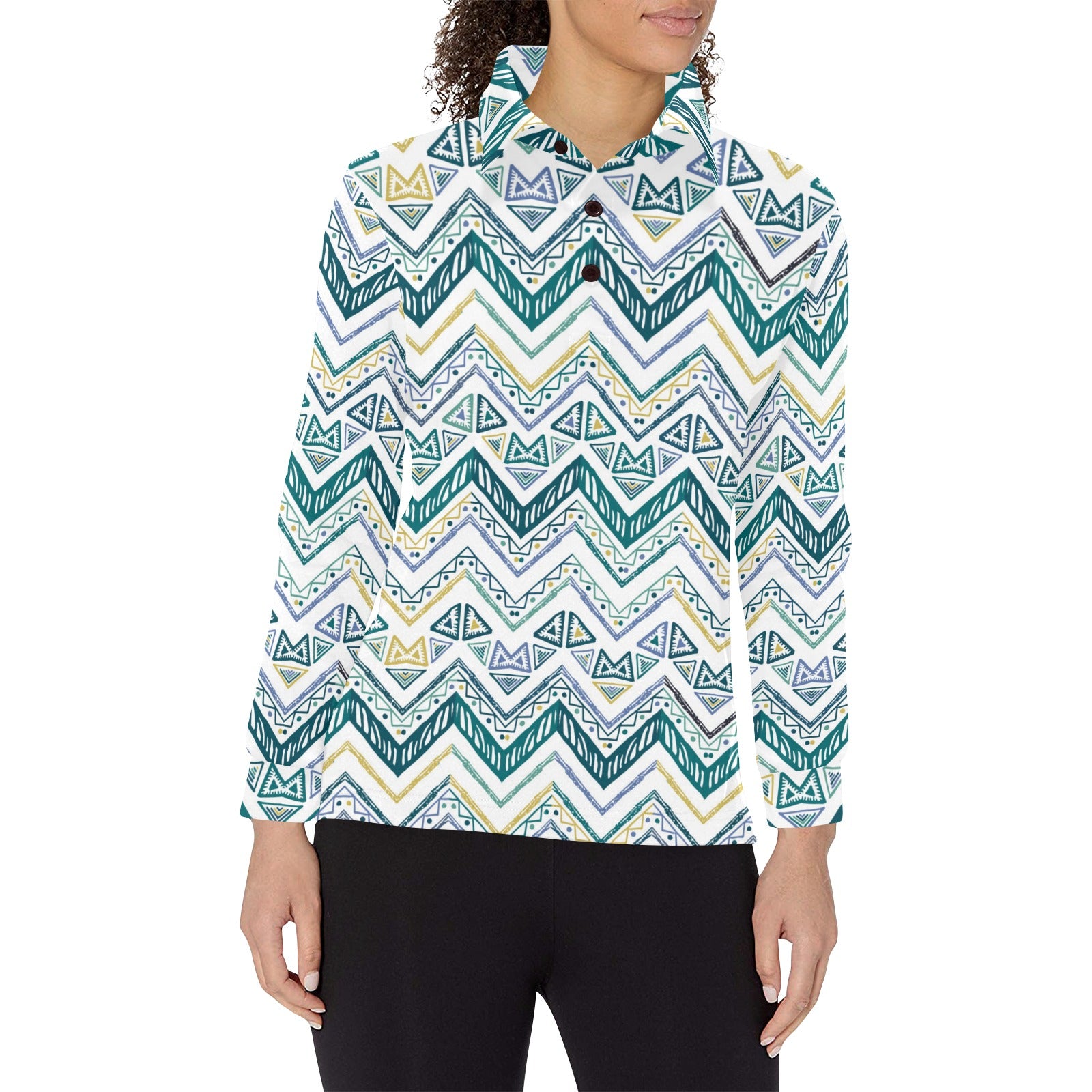 zigzag chevron paint design pattern Women's Long Sleeve Polo Shirt