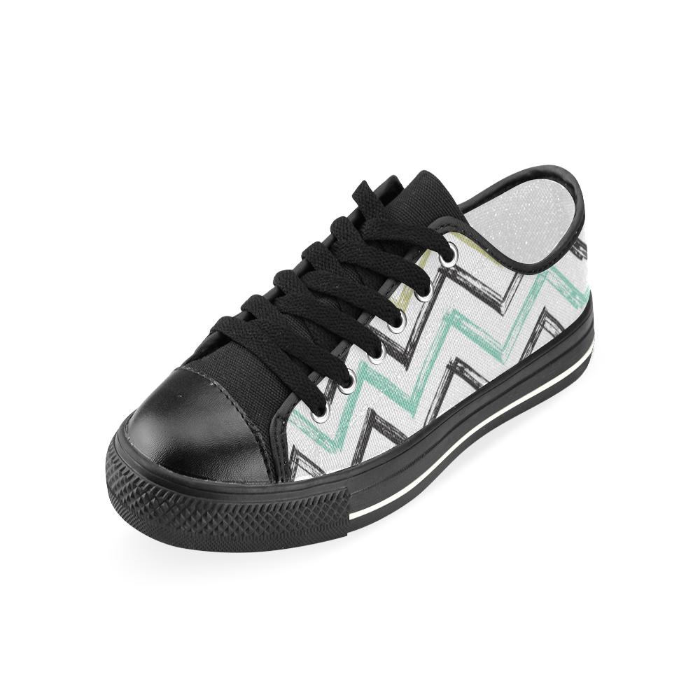 zigzag chevron paint pattern Kids' Boys' Girls' Low Top Canvas Shoes Black