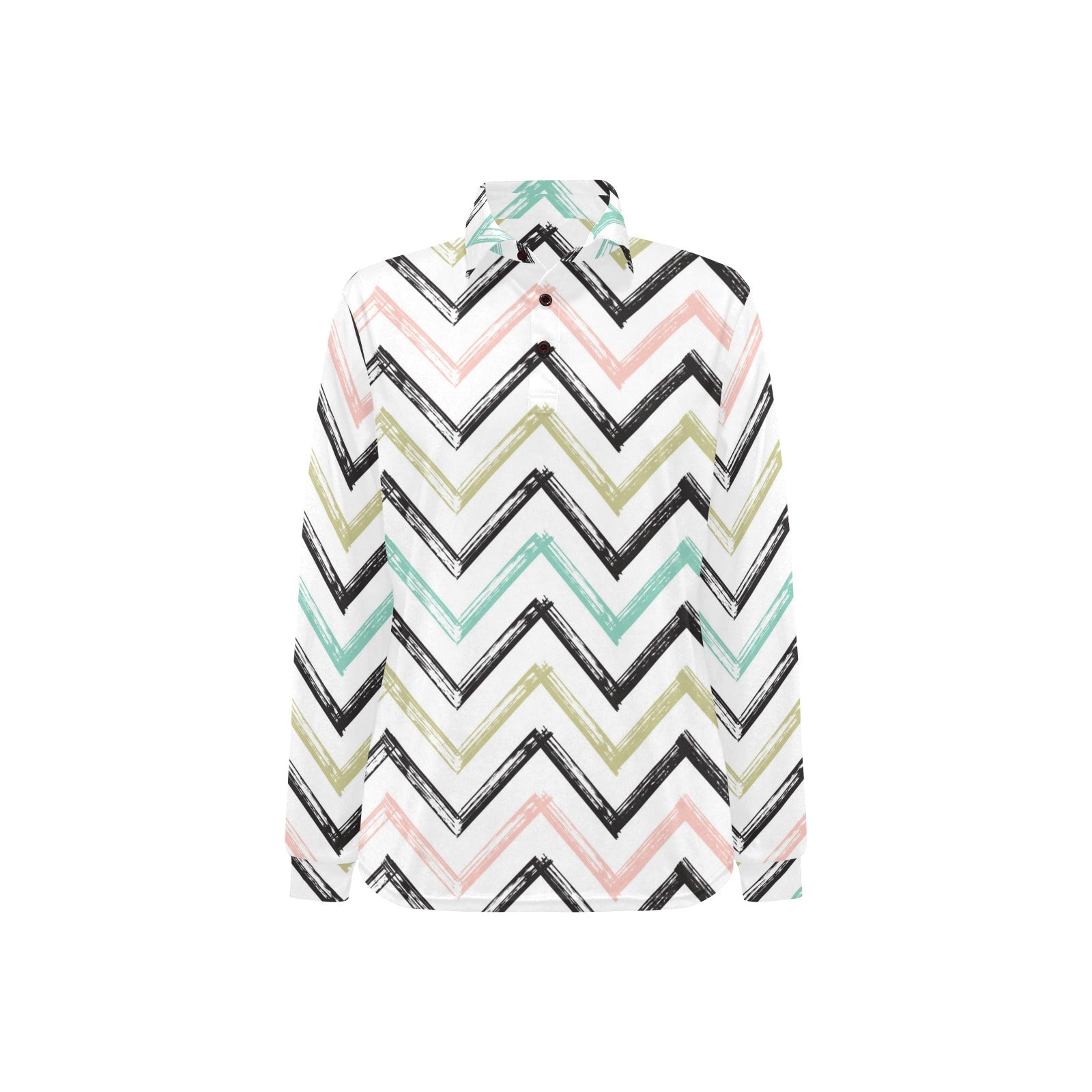 zigzag chevron paint pattern Women's Long Sleeve Polo Shirt