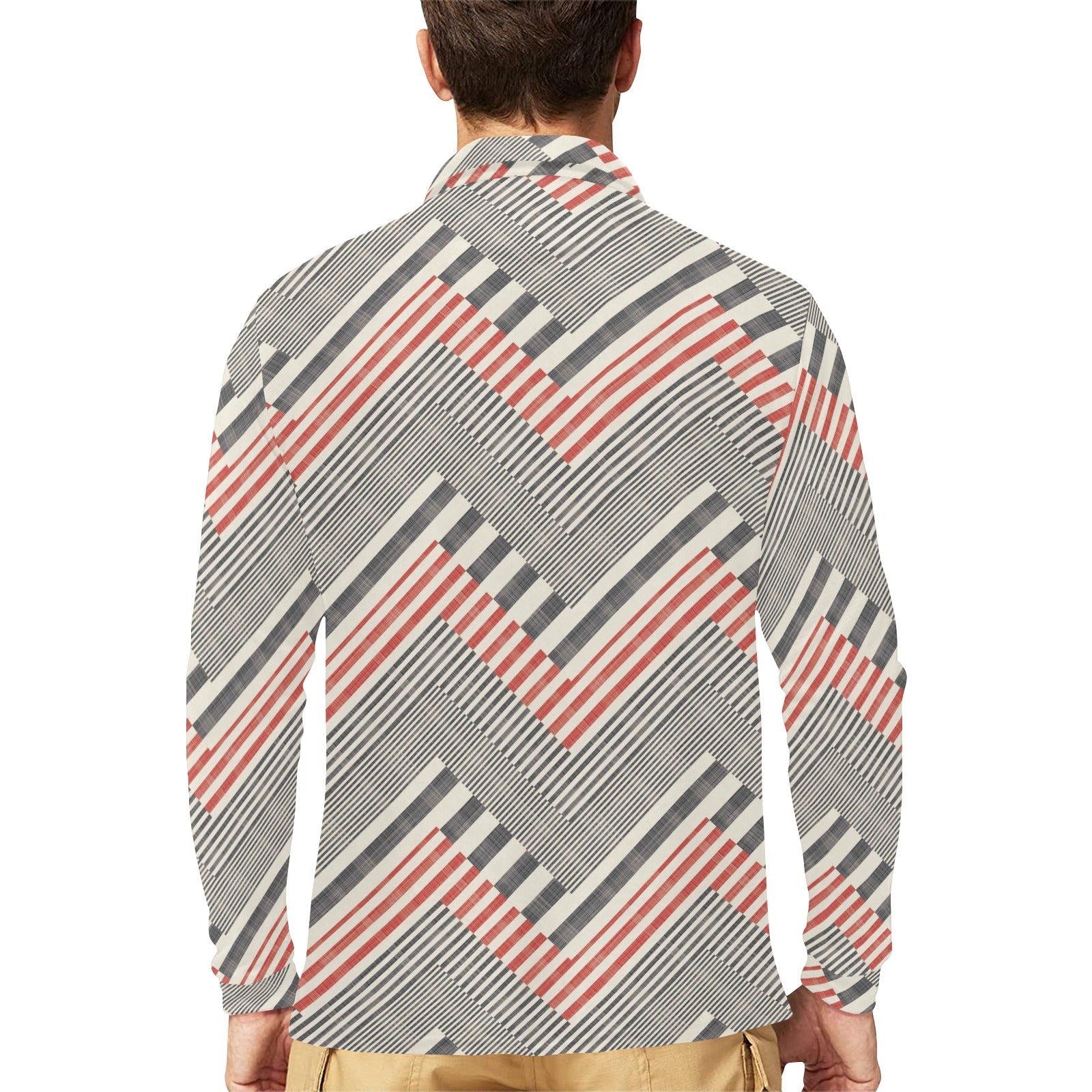 zigzag chevron striped pattern Men's Long Sleeve Polo Shirt